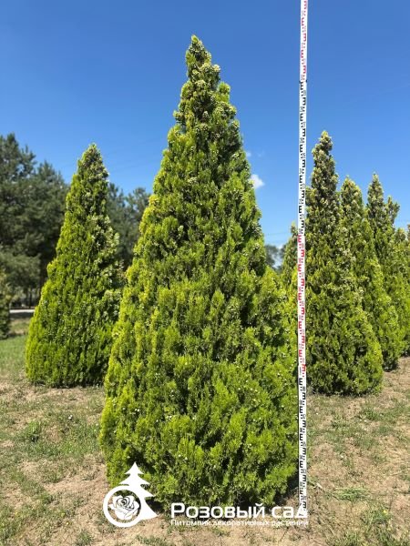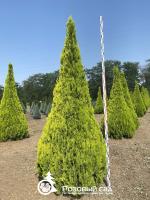 Средний по силе роста сорт. Побеги расположены близко друг к другу, что образует достаточно плотную пирамиду. Хвоя ярко желтого цвета, осенью приобретает бронзовый оттенок. Используется для рядовых посадок, в группах и одиночно.