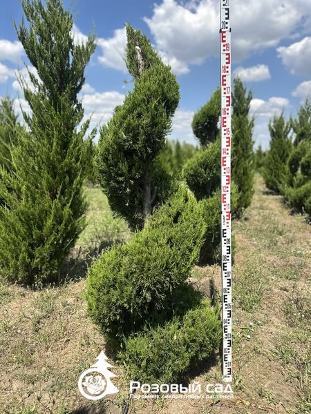 Форма кроны колоновидная. Хвоя тонкая, окрашена в насыщенный изумрудно-зеленый цвет, в основном игловидная, но на периферии куста можно встретить и чешуйчатую. Молодой прирост 10-12 см в год. Хотя растение теневыносливое, сажать его рекомендуется на солнечных участках.