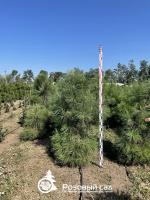 Отличается от других видов характерным цветом коры от желто-коричневого до оранжево-красного. Сосна желтая - растет медленно, в молодом возрасте конической формы. Через 30 лет в высоту достигает более 10 м, а в ширину 2-3 м. Толстые и жесткие побеги — желто-коричневые, а иногда даже оранжевые, лимонные, издают приятный лимонный аромат. Иглы зеленого цвета, очень длинные (до 25 см). Не требовательна к почве и влаге. Она хорошо переносит городской климат и загрязнение воздуха. Любит солнце.